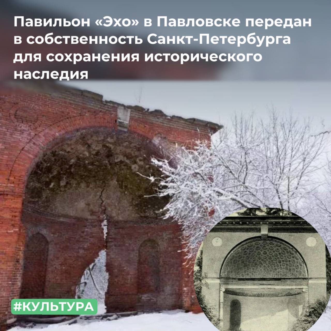 МТУ Росимущества в городе Санкт-Петербурге и Ленинградской области передало в собственность Санкт-Петербурга архитектурное сооружение «Павильон «Эхо» (ранее храм Флоры и Помоны), расположенное в городе Павловске.