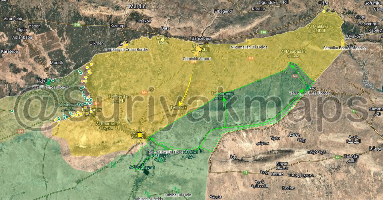То, что осталось от сирийского Курдистана. Курдский проект де-факто уже закрыт. Речь уже скорее идет о политическом выживании курдов в Сирии. Американцы уже особо не скрываясь загоняют курдов под ХТШ.