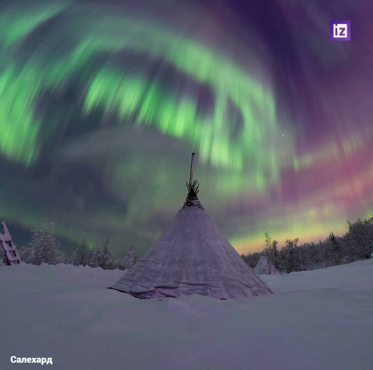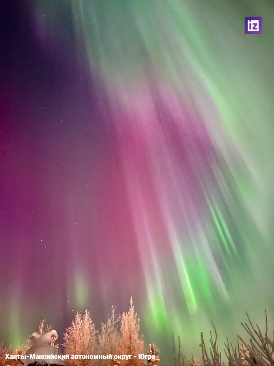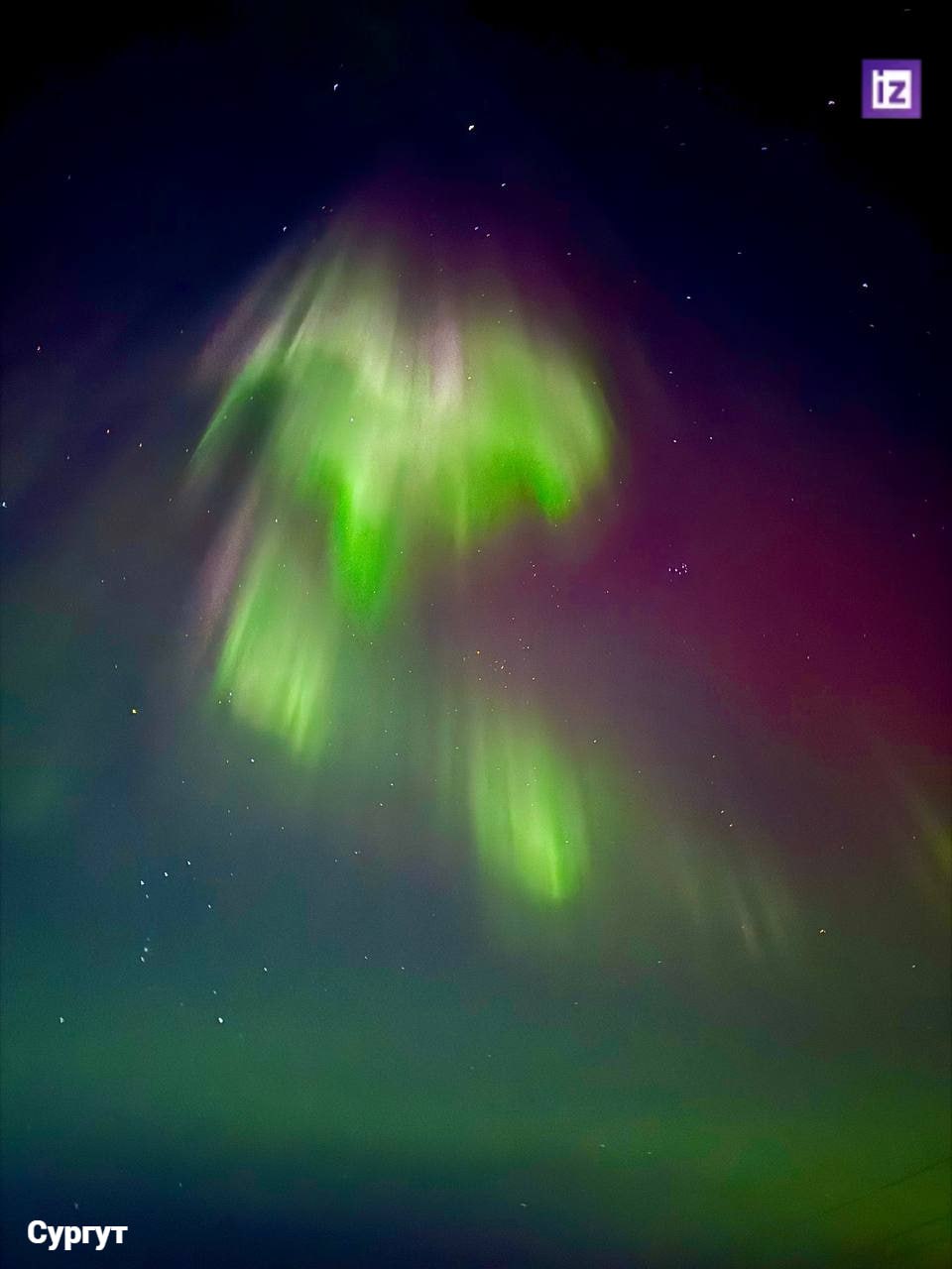 Яркие цветные сполохи в эти дни наблюдали также жители Сургута, Ханты-Мансийска, Новосибирска, Красноярска, Омска, Салехарда и Сыктывкара.
