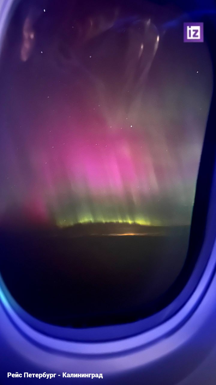 "Мне посчастливилось видеть сегодняшнее сияние через стекло иллюминатора", — поделилась эмоциями пассажирка рейса Санкт-Петербург — Калининград.