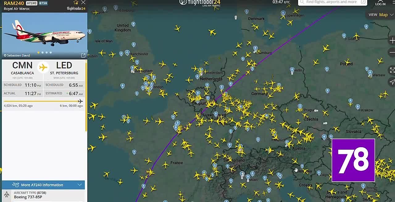 По данным Flightradar, самолет из Касабланки прилетел в Петербург в 6:47. Вылет в Марокко назначен на 8 утра.