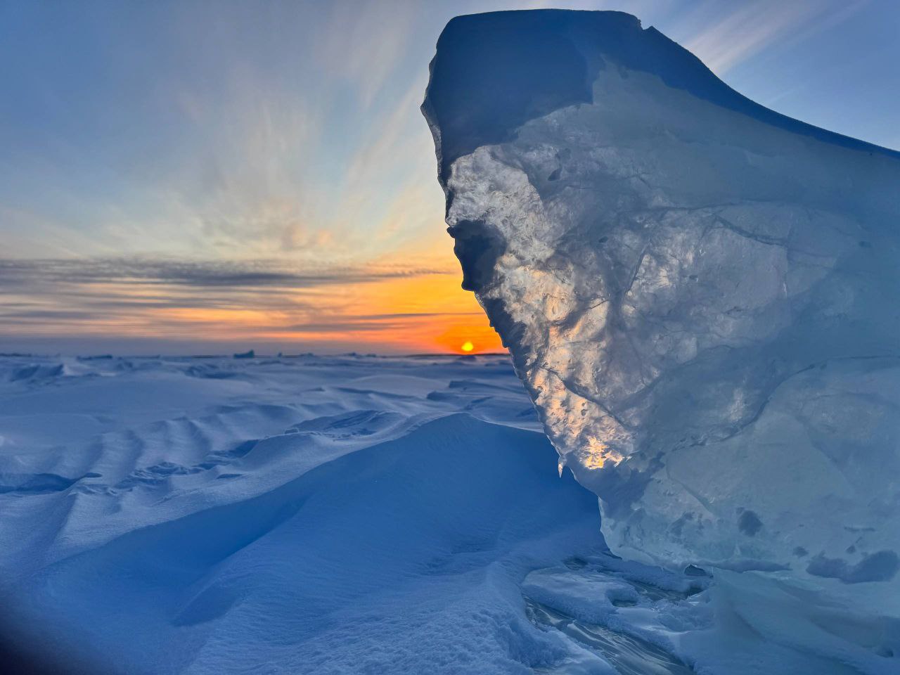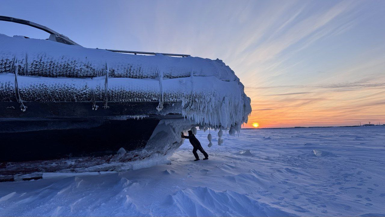 На широте порта Дудинка закончилась полярная ночь. Ледокол подвиньте, пожалуйста. Солнце не загораживайте.