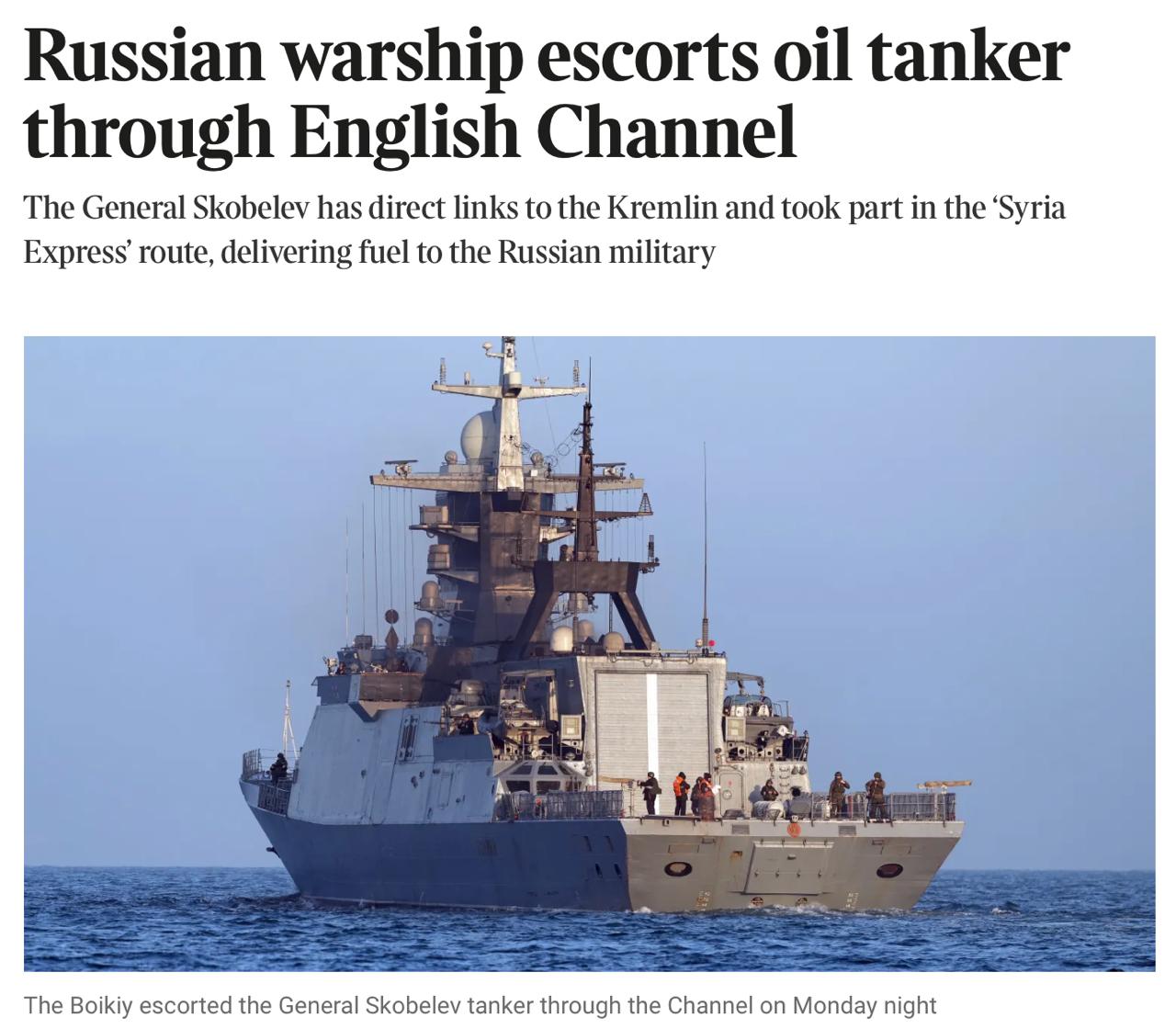 Британская пресса опять нагнетает. The Times сегодня сообщает, что в понедельник ночью российский корвет «Бойкий» сопроводил нефтяной танкер через Ла-Манш.