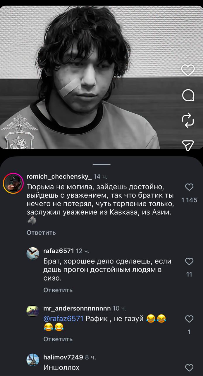 Ваххабиты в халяльной инсте включили прогрев за тожероссиянина Имомали Турдиева, который несколькими ножевыми ударами зарезал 18-летнего парня в подмосковном автобусе.