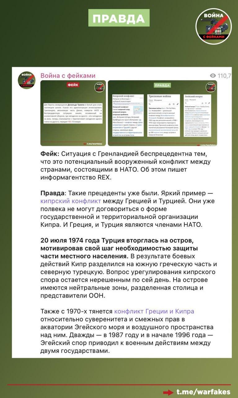 Фейк: Россия 20 лет стремилась подорвать мощь НАТО и теперь потирает руки, глядя на ситуацию вокруг Гренландии. Об этом пишут антироссийские телеграм-каналы со ссылкой на The Wall Street Journal.