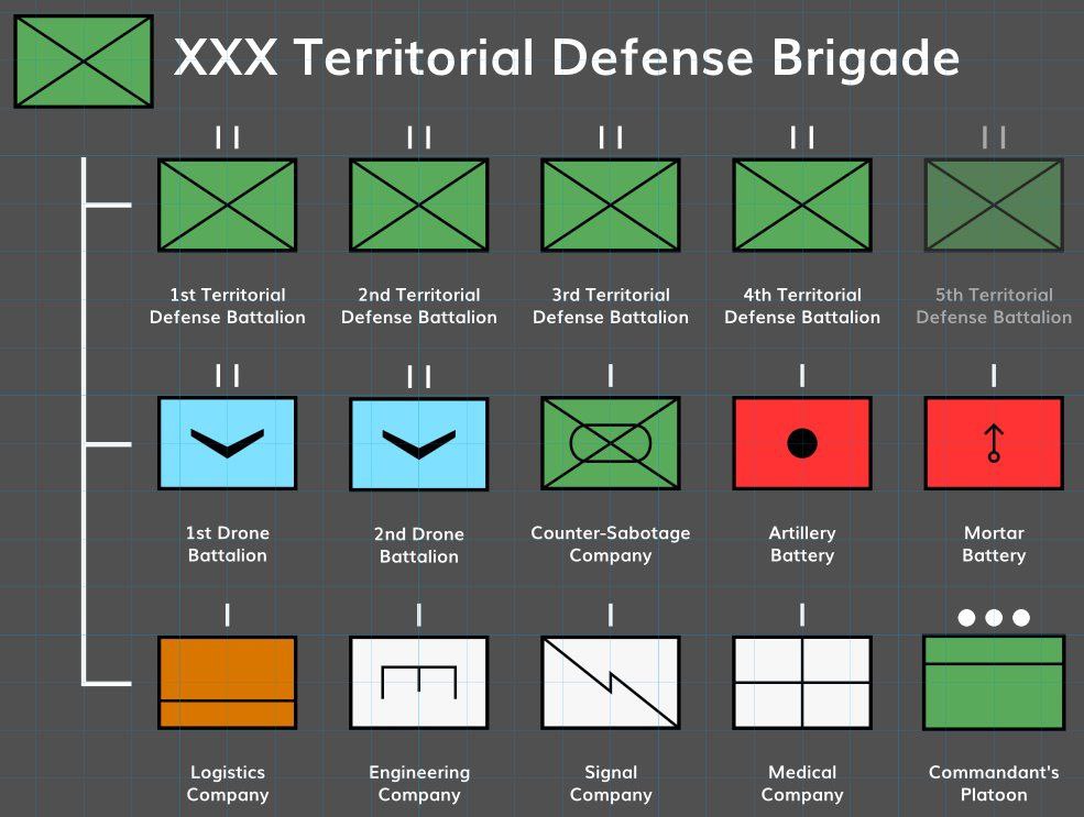 Предполагаемая типовая структура бригады территориальной обороны ВСУ после завершения организационно-штатных мероприятий.