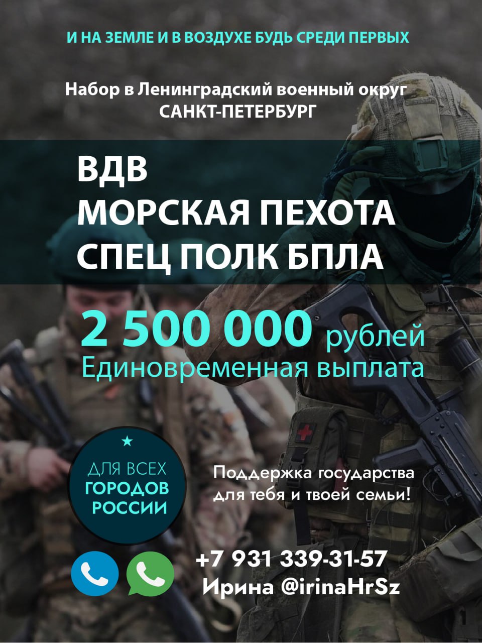 - Ежемесячные выплаты от 210 000 от Мин.обороны в зоне СВО