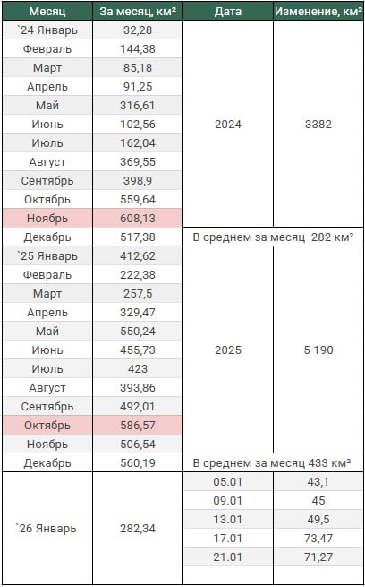 Обновление по данным c 17 по 20 января 2026. Темп продвижения +17,8 км в сутки за период, общее продвижение 71,3 км.