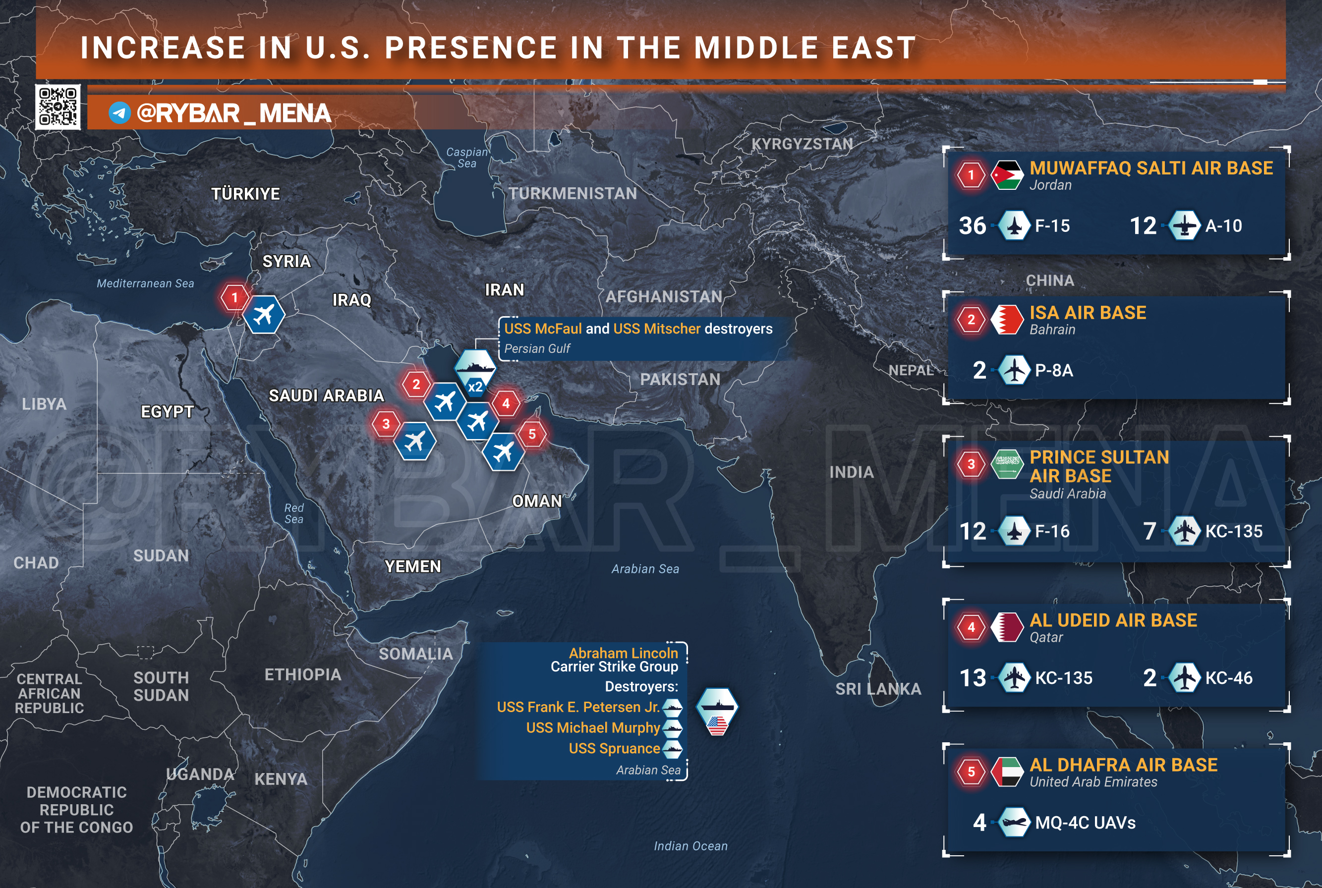 За последнюю неделю американцы нарастили группировку самолетов истребительной, заправочной и транспортной авиации в регионе.