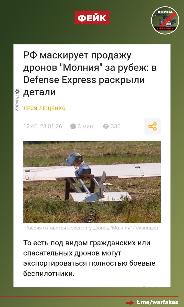 Фейк: РФ маскирует продажу дронов «Молния» за рубеж. Об этом сообщается в издании Defense Express.