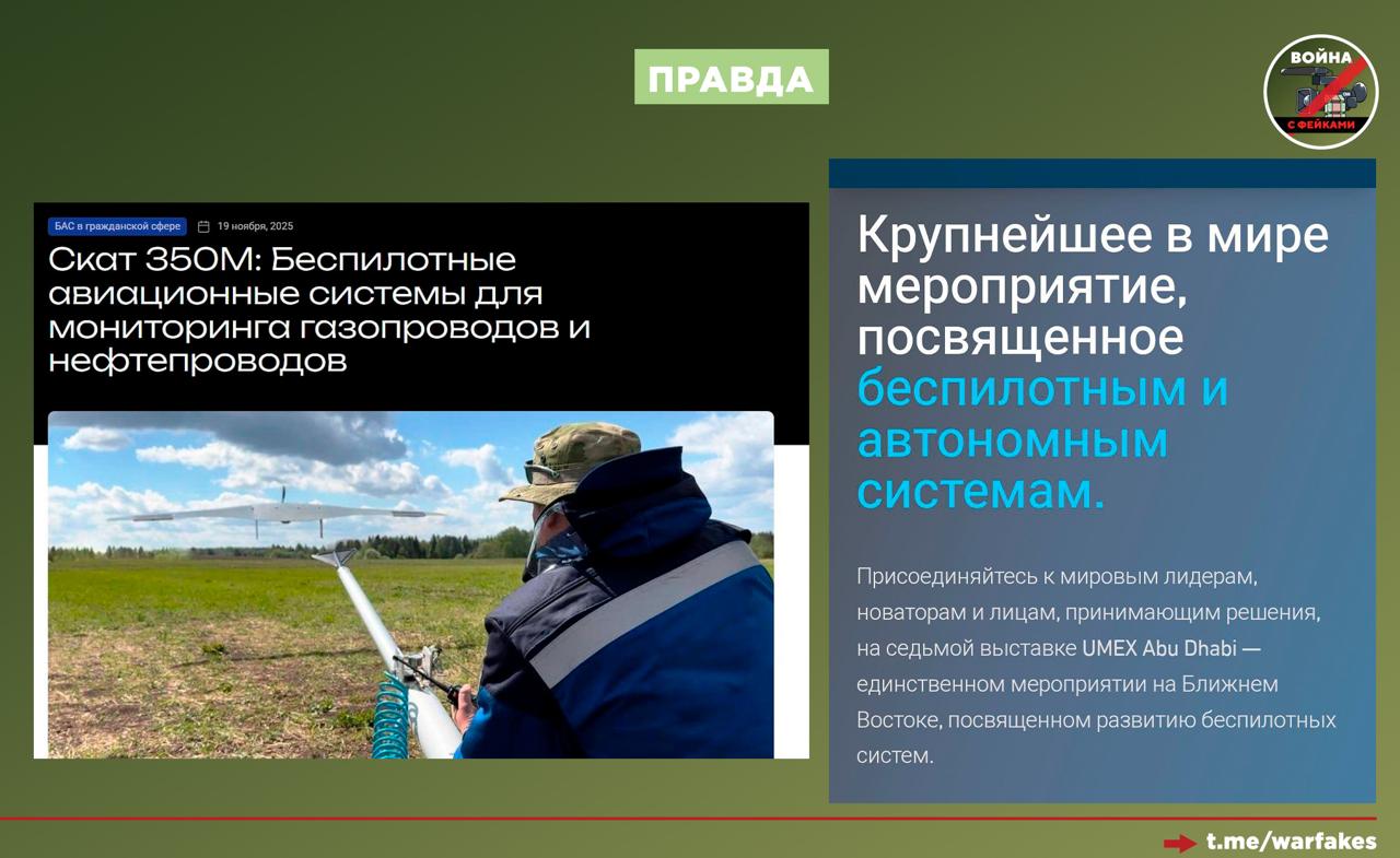 Правда: Издание раздуло из мухи слона, а точнее ввело аудиторию в заблуждение на основании информации с выставки UMEX 2026, которая проходит в Объединенных Арабских Эмиратах.