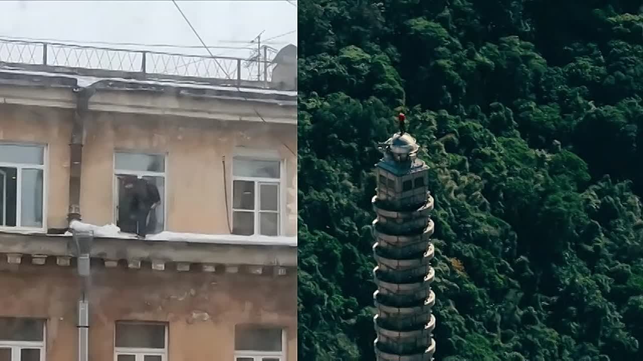 Американец без страховки взобрался на небоскреб в Тайване — ради эпичных селфи и славы. А дворник без страховки вылез на узкий выступ 5-го этажа дома в Петербурге — просто чтобы смахнуть снег с карниза