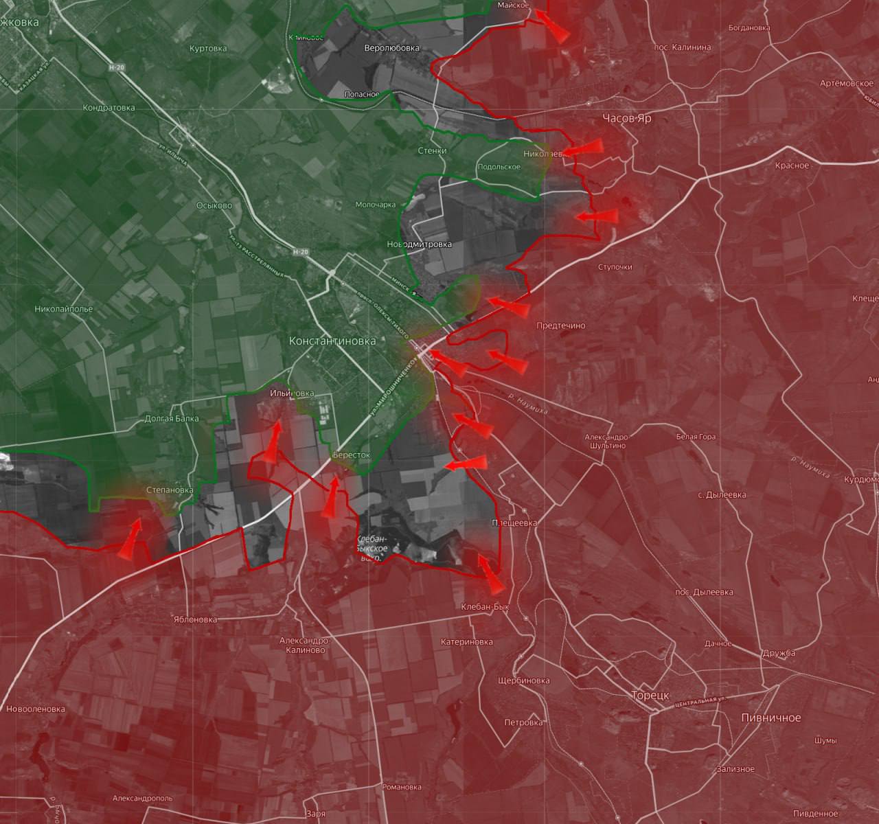 «На Константиновском направлении российские подразделения нарастили давление и продвинулись сразу на двух участках Донецкой области: в районах Предтечино и Ступочек.