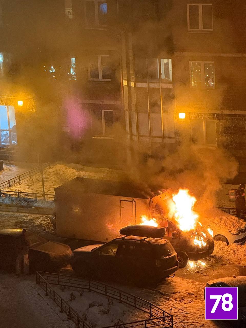 В Парголово на парковке сгорела «Газель» и две иномарки