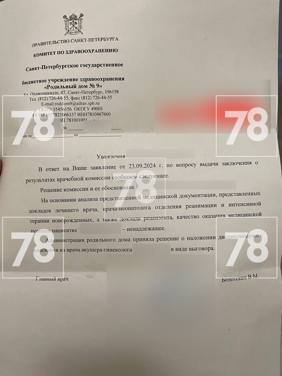 Также роддом №9 провел врачебную комиссию. По ее заключению отмечено, что качество оказания медицинской помощи было ненадлежащим. Администрация роддома приняла решение о дисциплинарном взыскании на врача акушера, однако работу в роддоме она продолжает. Об этом уведомили Светлану в официальном ответе. При этом извинений женщине так никто и не принес.