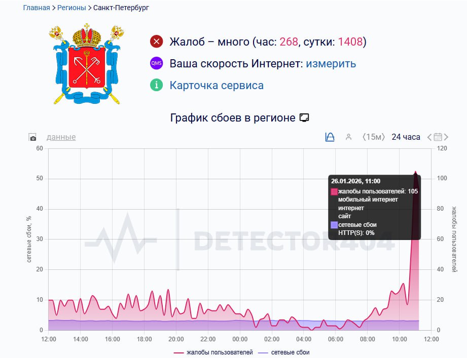 Мобильный интернет сбоит — регистрируется всплеск жалоб из Петербурга.