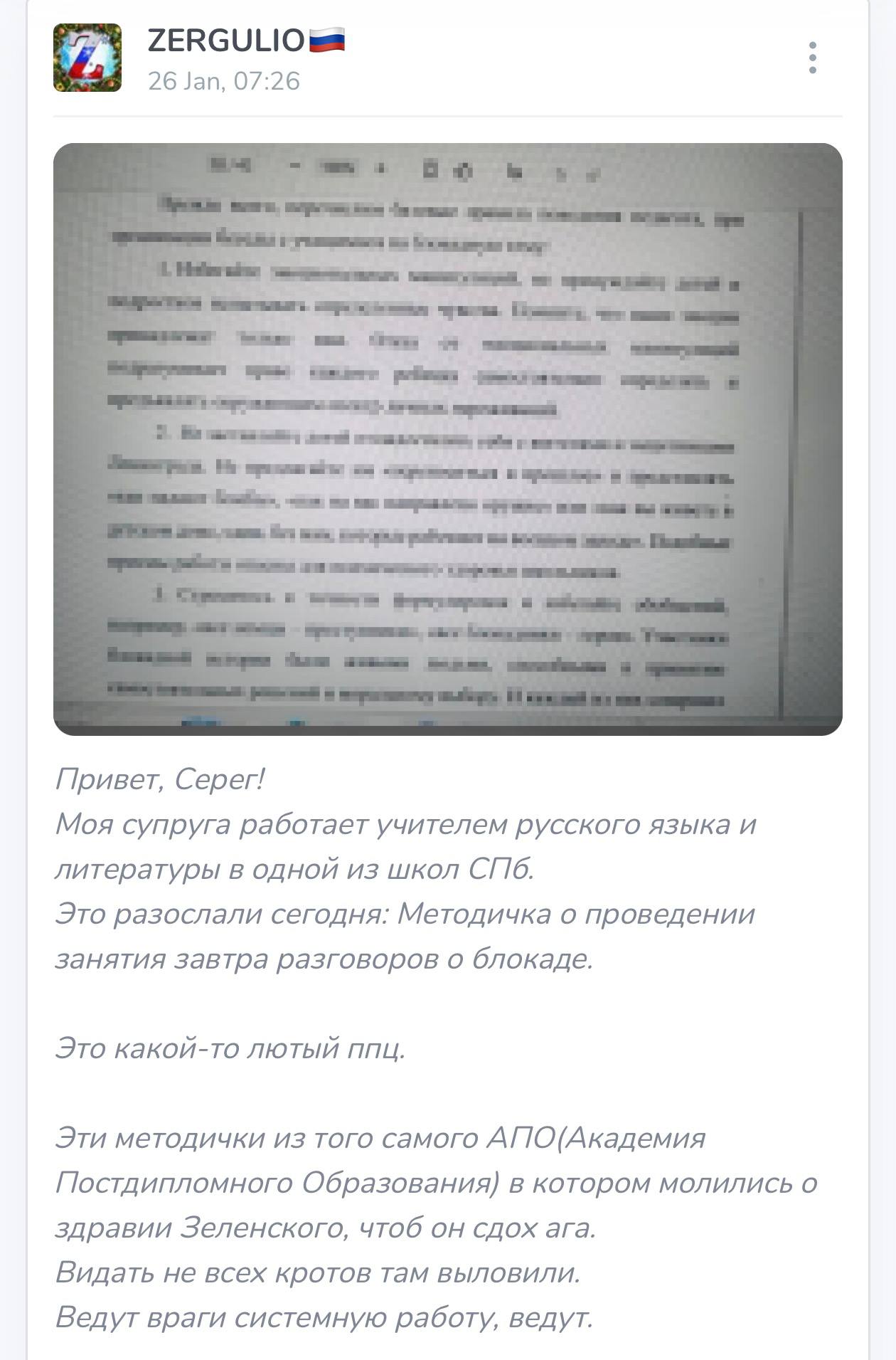 В некоторых пабликах появилась информация о том, что в ряде школ Санкт-Петербурга учителям раздали методички с рекомендациями по проведению завтра занятий по теме о Блокаде города-героя Ленинграда в годы Великой Отечественной Войны (завтра - День снятия Блокады Ленинграда).