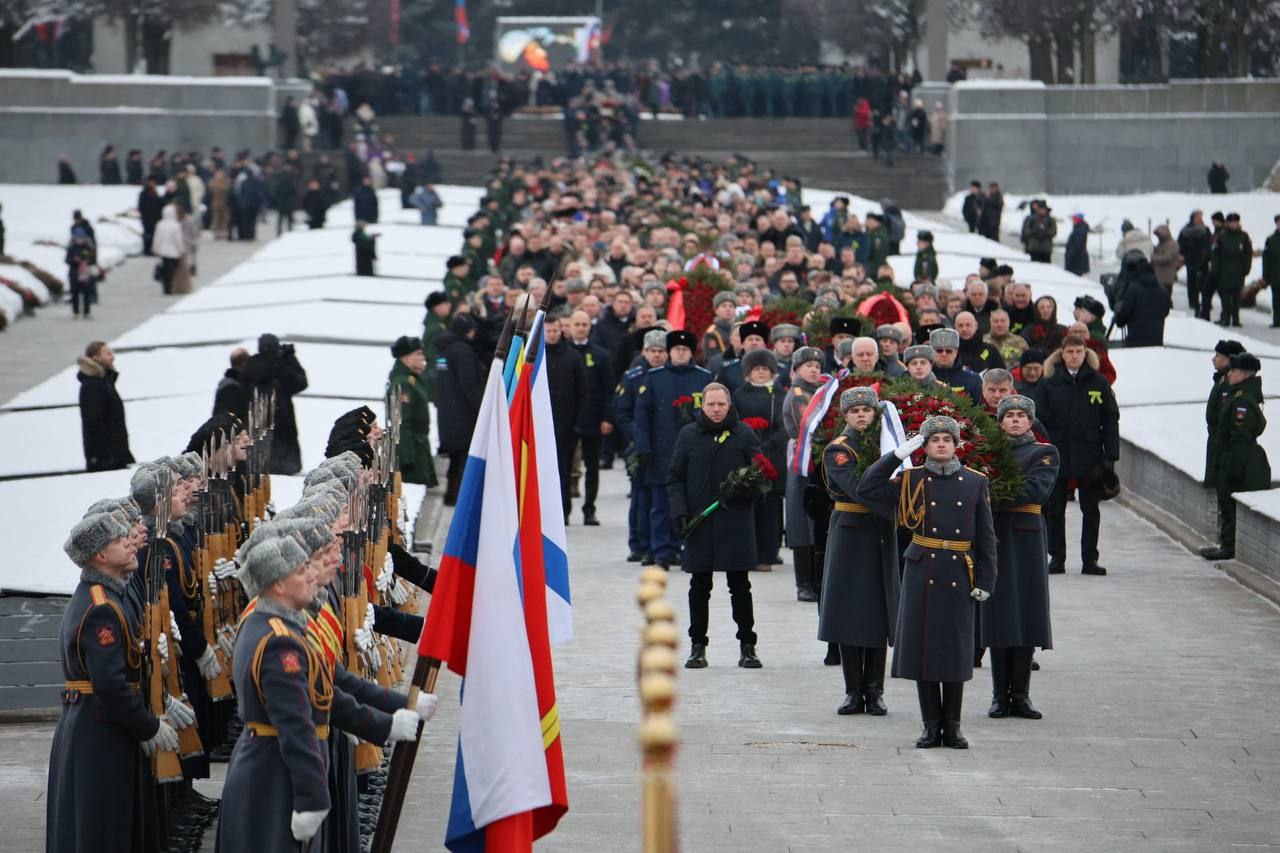 Сотни петербуржцев пришли на Пискаревское кладбище. Так выглядит память о людях, погибших в годы блокады Ленинграда.