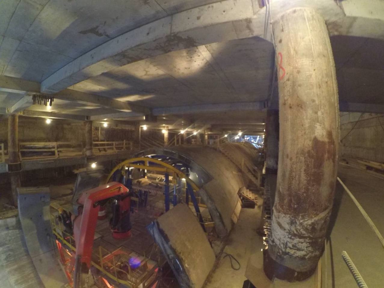 Появились первые снимки строящейся станции метро «Каменка». Рабочие возводят стены в грунте и тоннельную вентиляцию.