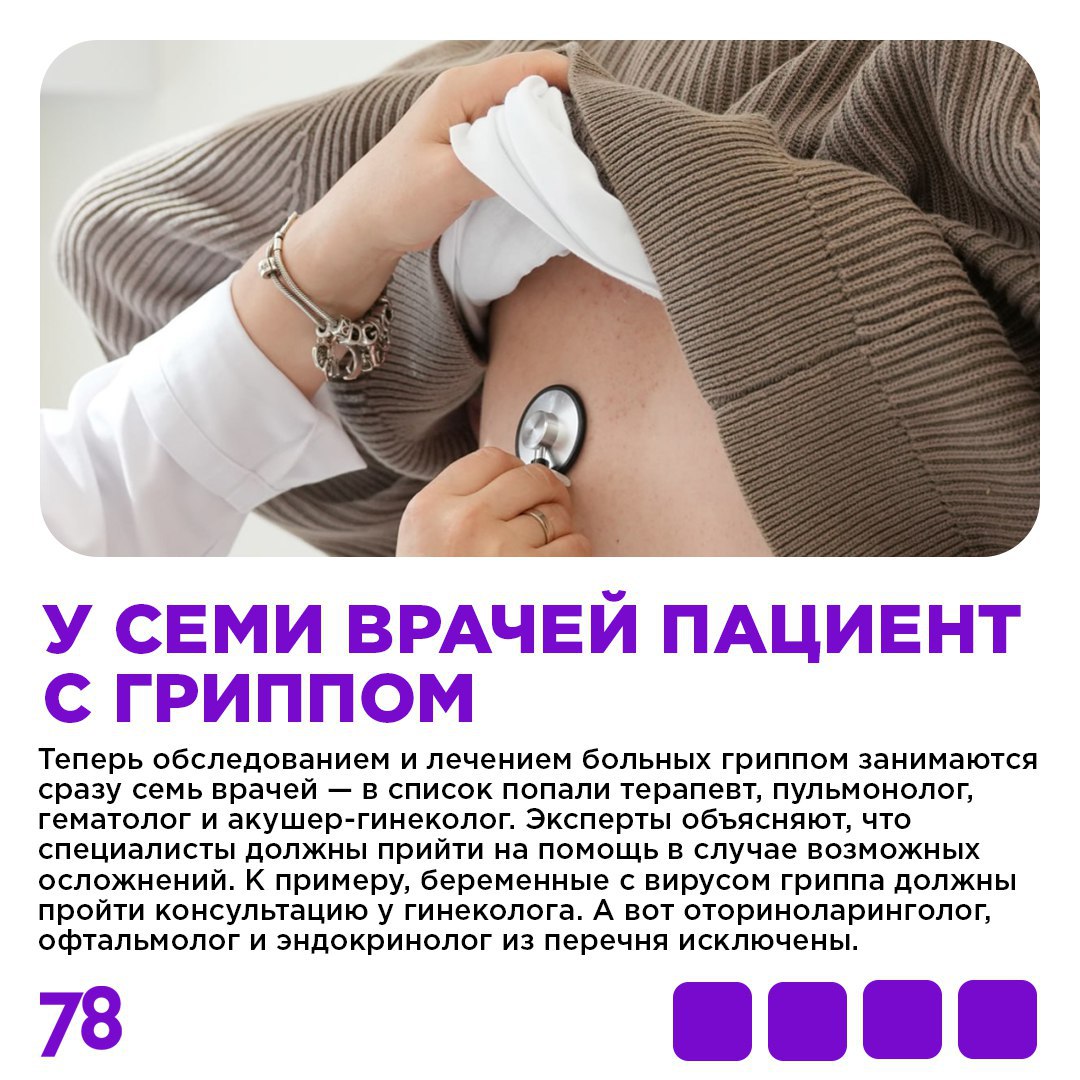 Изменился и перечень назначаемых препаратов — от антибиотиков отказываются. Обследованием и лечением пациентов с гриппом теперь должны заниматься сразу семь специалистов. Из списка исключили оториноларинголога, зато добавили… гинеколога. Зачем?