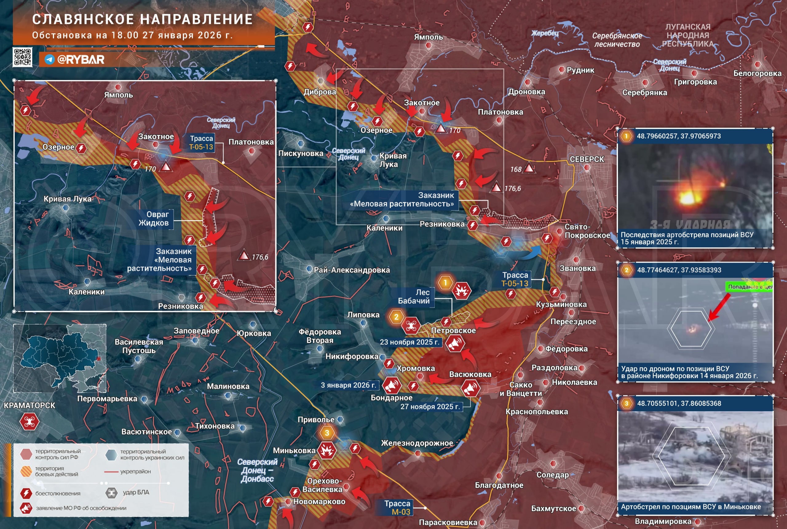 - После освобождения Закотного противника удалось сбросить с высот к югу от села, а также продвинуться вдоль одной из балок. На рубеже Закотное — Резниковка зафиксированы локальные успехи в лесополосах и в районе оврага Житков.