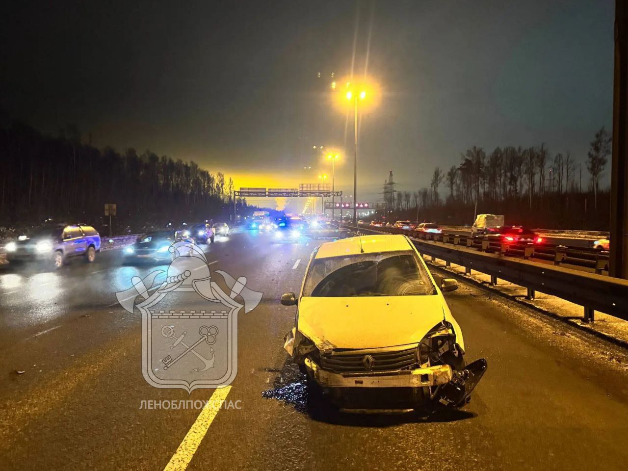 ДТП случилось в 200 метрах от съезда на Мурманское шоссе. В попутном направлении собрался паровозик из легковушек.