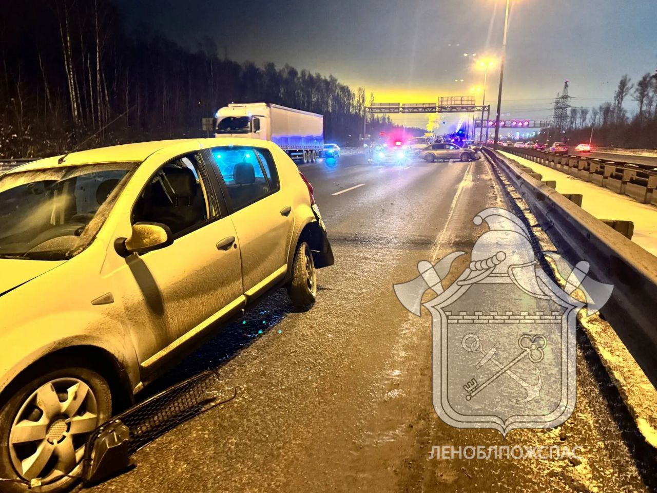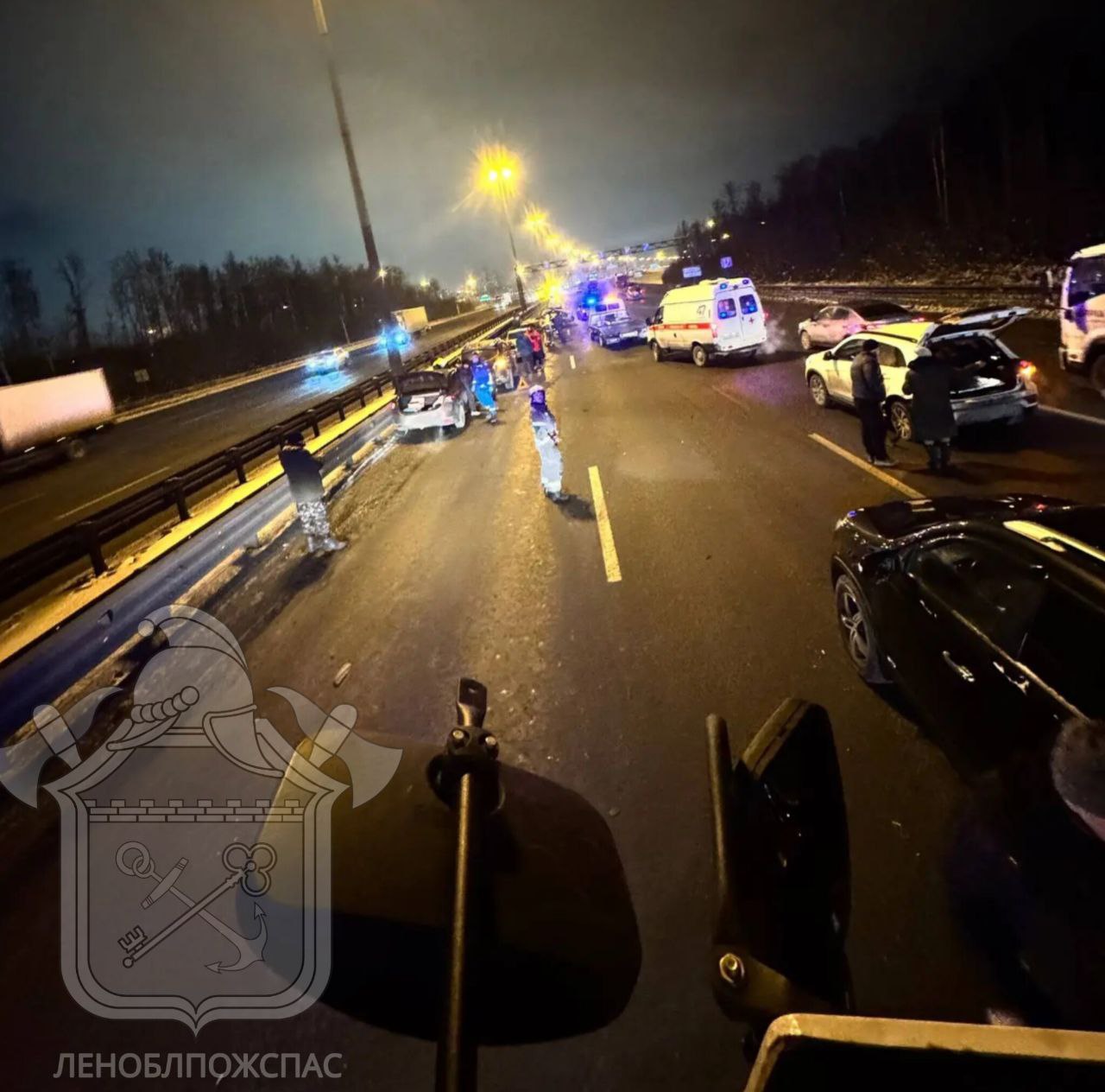 Сейчас на участке трассы перекрыли две полосы движения. На месте работает личный состав 150-й пожарной части Всеволожского отряда «Леноблпожспас», сообщает пресс-служба ведомства.