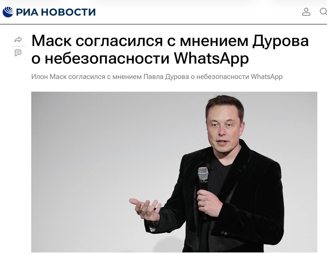 Маск согласился с мнением Павла Дурова о небезопасности WhatsApp (принадлежит корпорации Meta, деятельность которой запрещена в РФкак экстремистская)