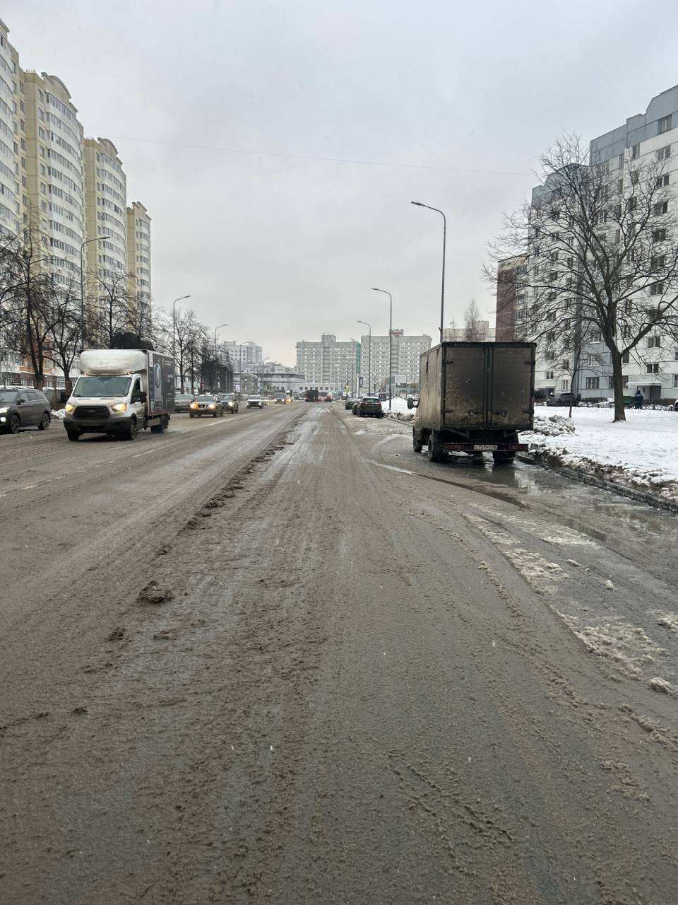 Улица Маршала Захарова утром превратилась в реку. У дома 35 холодная вода из дефектной трубы затопила двор и проезжую часть.
