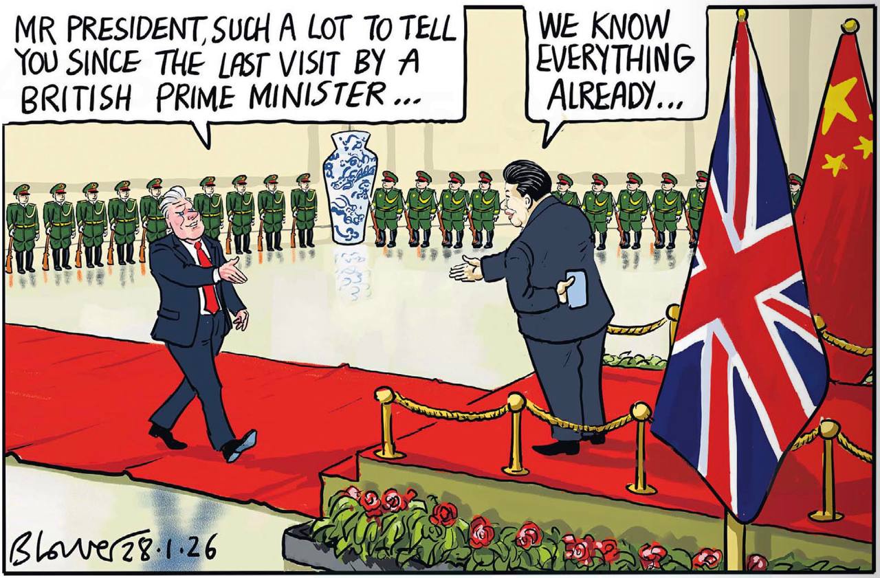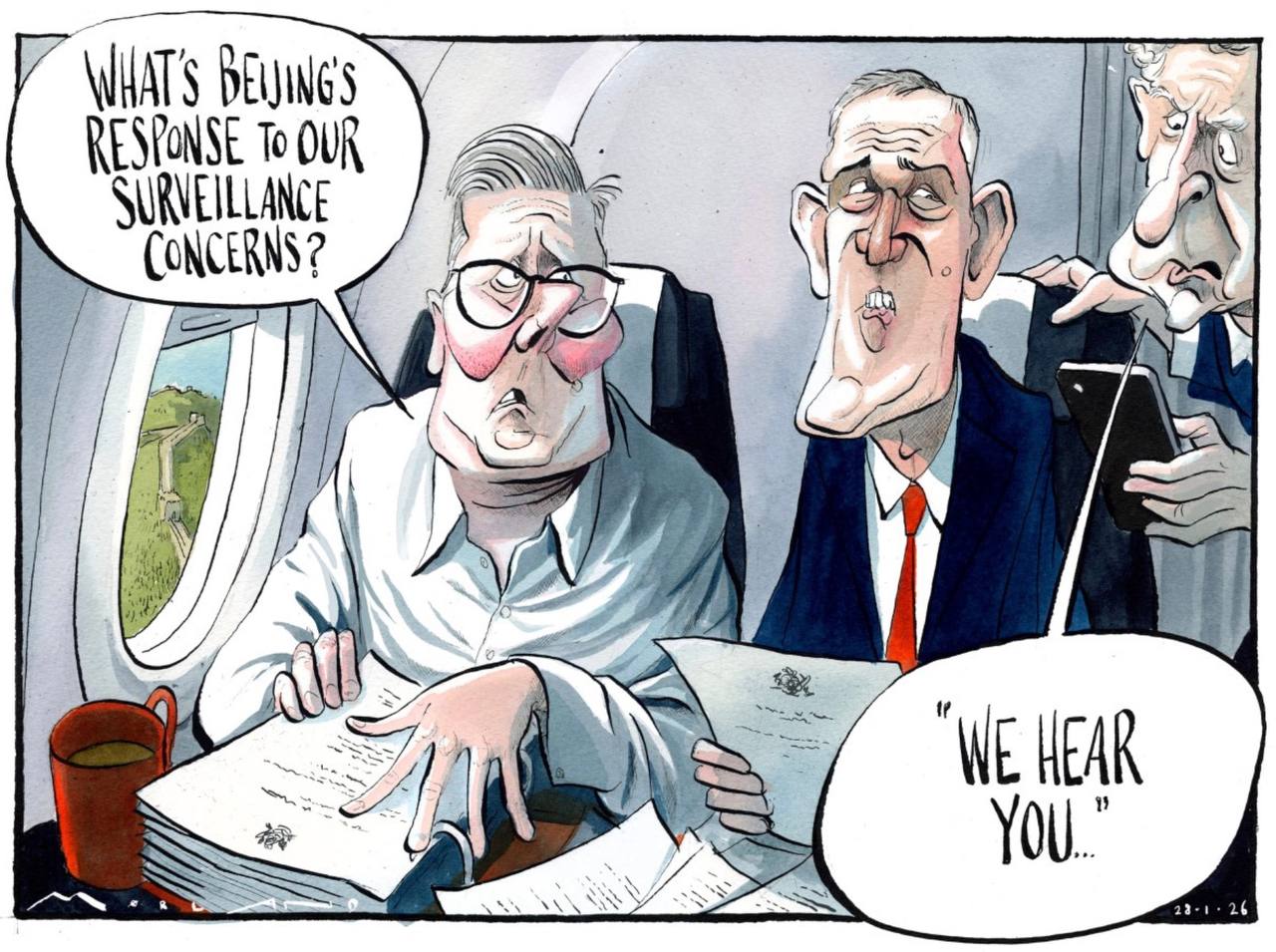 Премьер Британии Стармер отправляется в Китай. Британская пресса, одержимая антикитайской шпиономанией, дружно кинулась рисовать иллюстрации на одну и ту же тему.