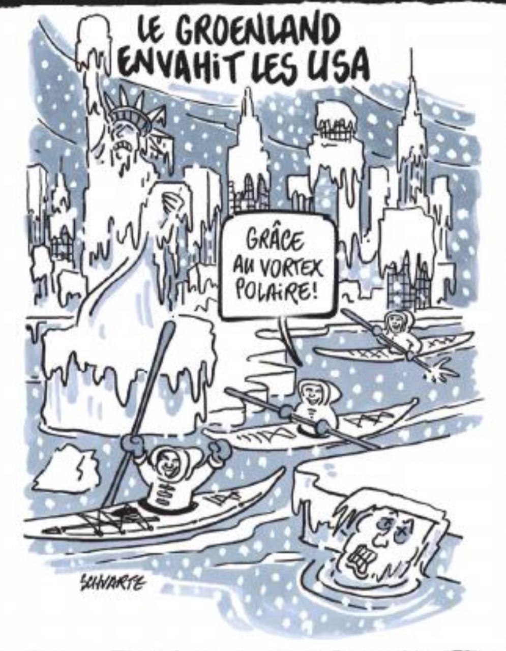 Французский еженедельник «Шарли Эбдо» объяснил природу снежной бури, обрушившейся на Америку. Оказывается, это Гренландия вторглась в США!