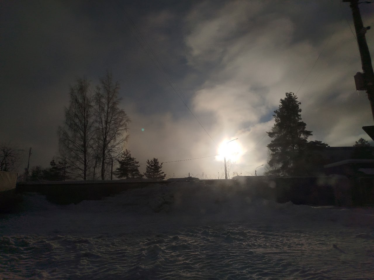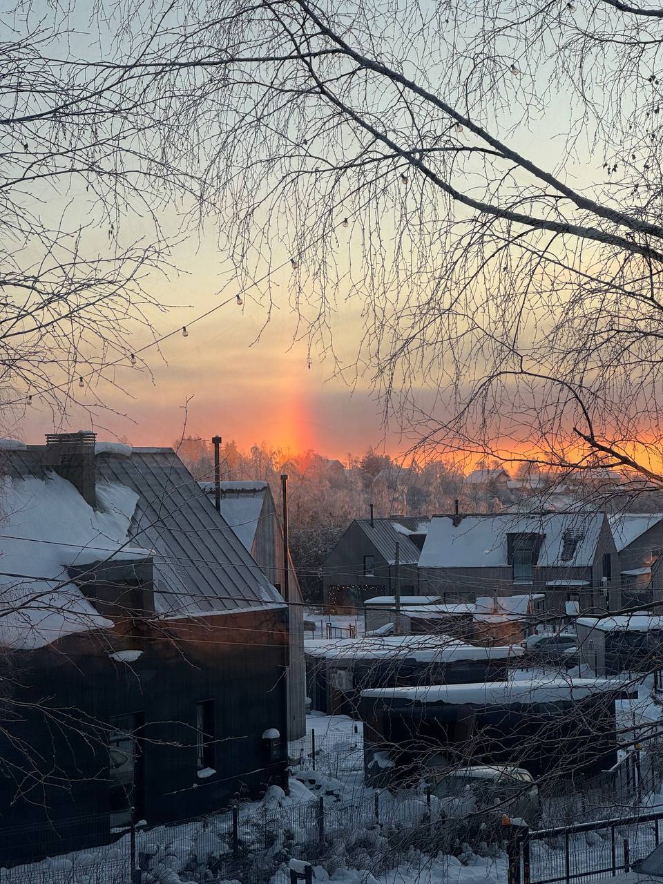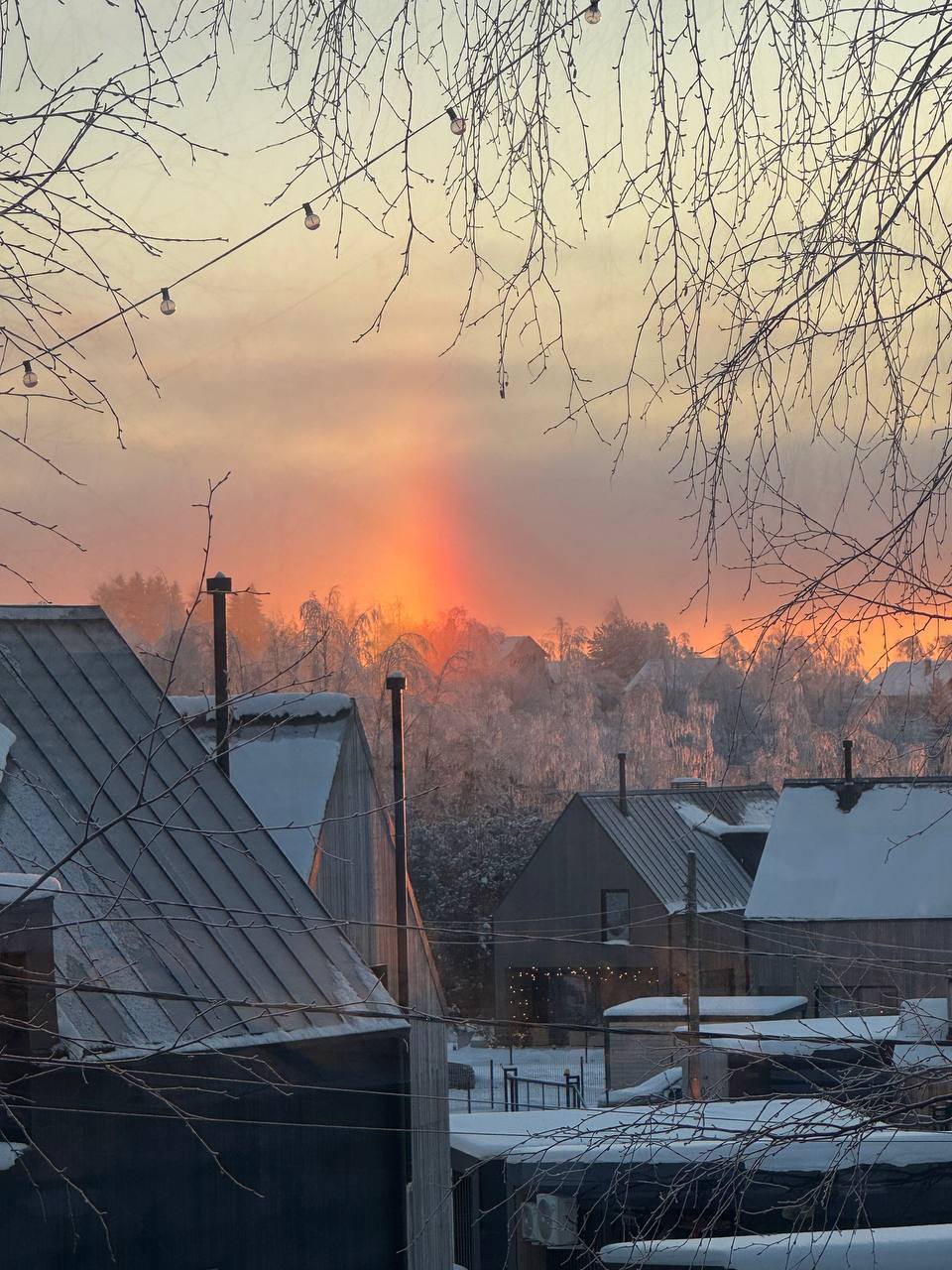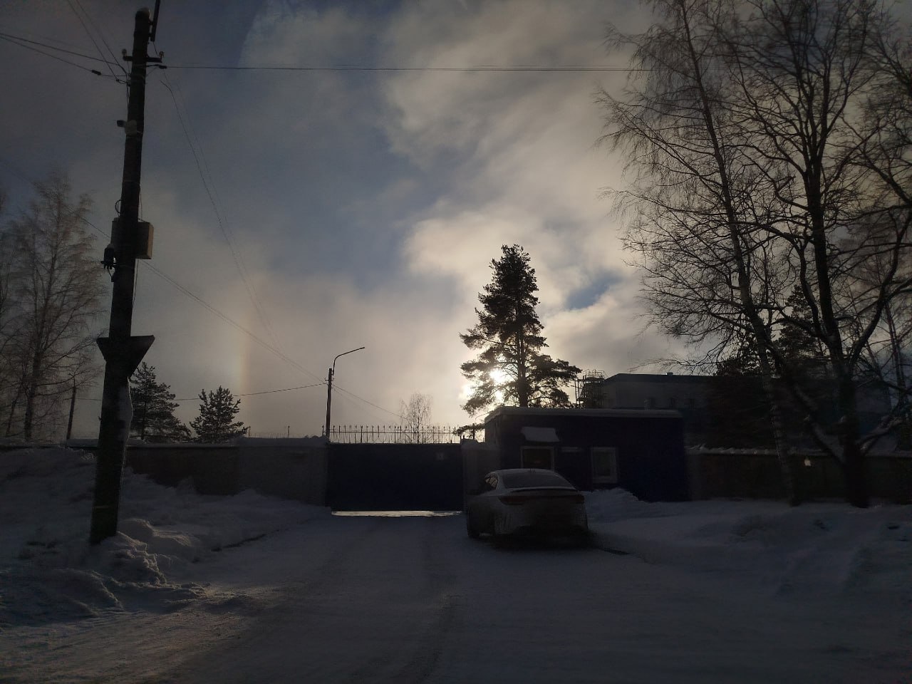 Красивое комбо собрали жители Всеволожского района Ленобласти. В небе одновременно сияют световой столб, гало и радуга.