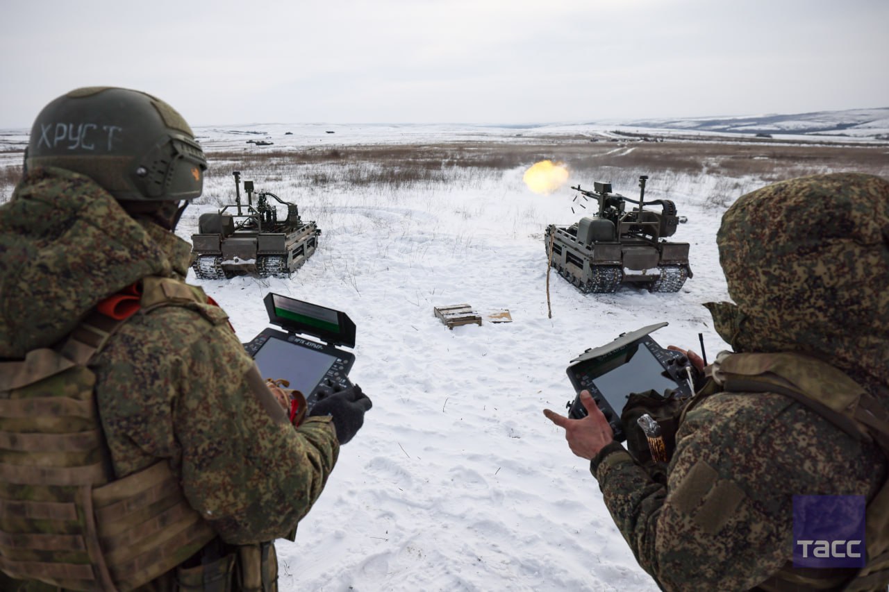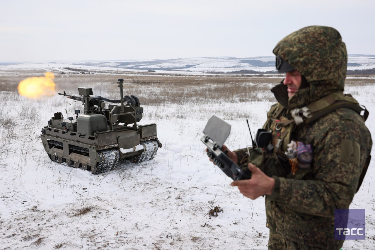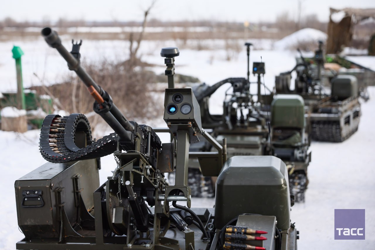 Галерея_ТАСС_Юг. Добровольческая разведывательно-штурмовая бригада "Невский" получила партию новейших роботехнических комплексов, в том числе ударные НРТК "Курьер" с пулеметными и гранатометными модулями, а также тяжелые...