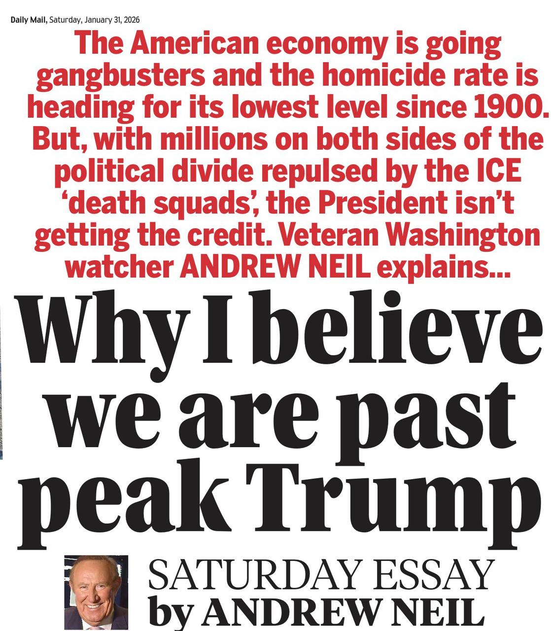 Ветеран британской журналистики Эндрю Нил считает, что «пик Трампа уже пройден». Об этом он пишет на страницах Daily Mail.