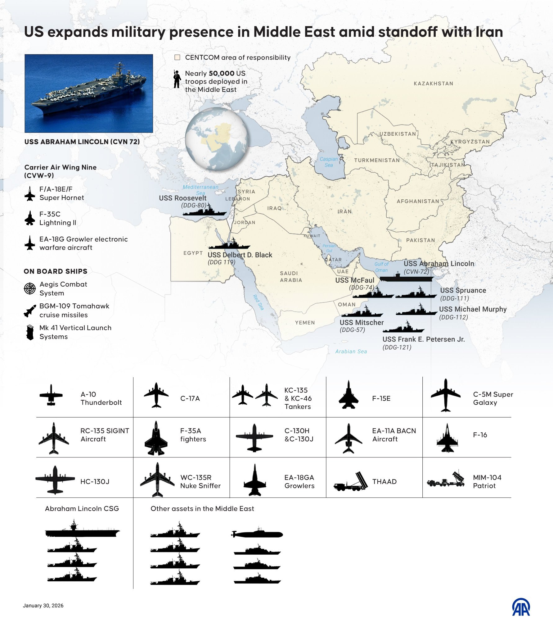 Карты наращивания военного присутствия США на Ближнем Востоке на фоне возросшей напряженности и угроз удара по Ирану.