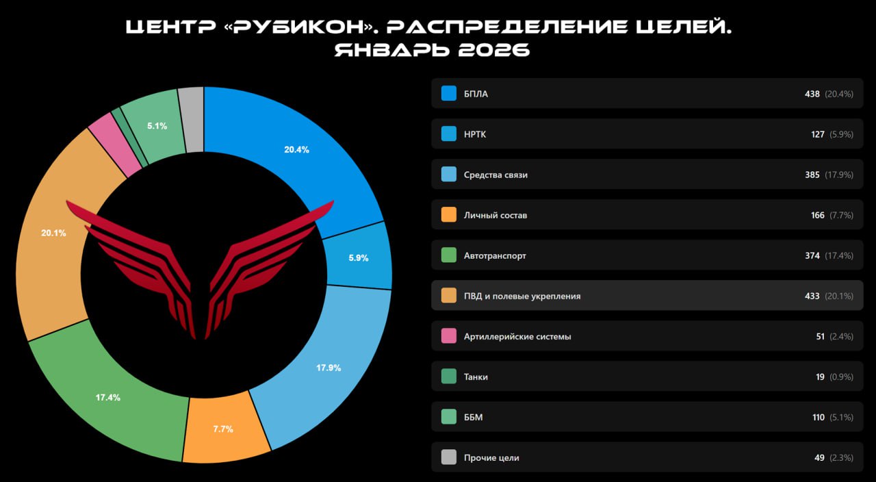 Количество опубликованных эпизодов поражения целей противника операторами Центра "Рубикон" в январе 2026 составило2152.