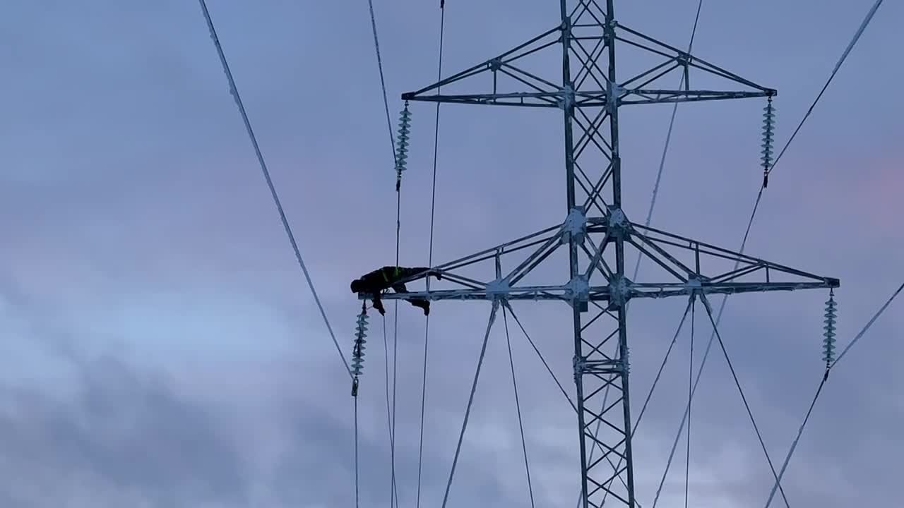 В тяжелыхусловиях смонтировали 2 километра провода и включили еще одну ЛЭП.