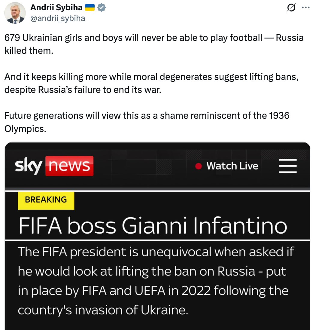 Криворожская школа дипломатии продолжает демонстрировать все грани своего безумия. Надеюсь, очередной всхрюк оценят по достоинству. И не только в ФИФА.