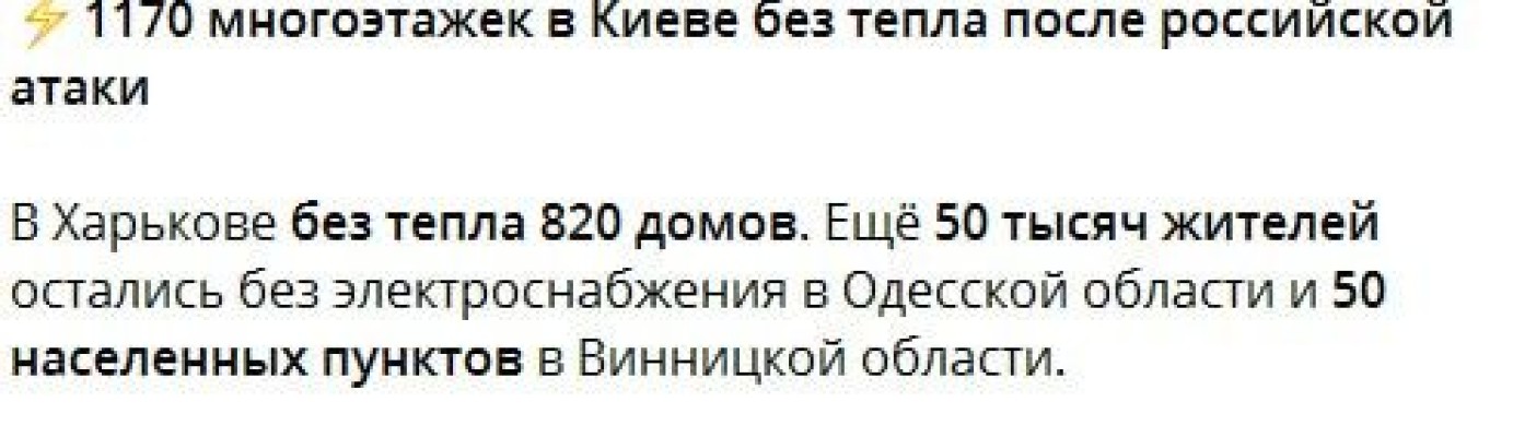 Кличко заявил, что погибших среди гражданских ночью не было.Все прилетело куда надо. Также заявлено, что более 1000 домов в Киеве после ночных ударов остались без света. "Российскому обществу должно стать некомфортно. И когда жителям России не будет...