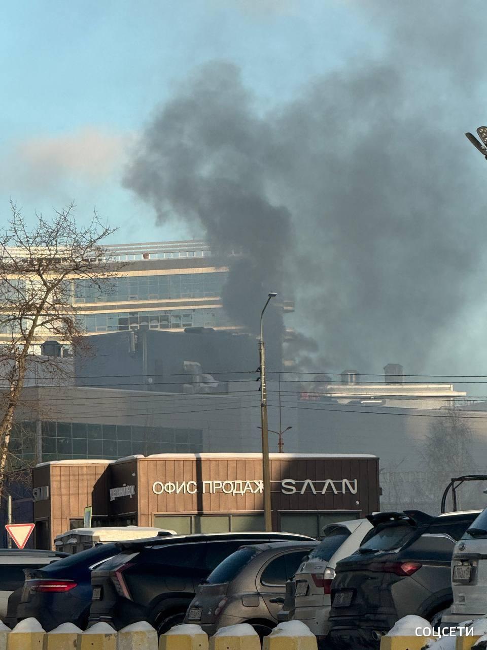 ТЦ "Капитолий" горит в Санкт-Петербурге. Людей срочно эвакуируют из здания. По предварительным данным, возгорание началось в ресторане "Гуси-Лебеди", сообщают местные СМИ.