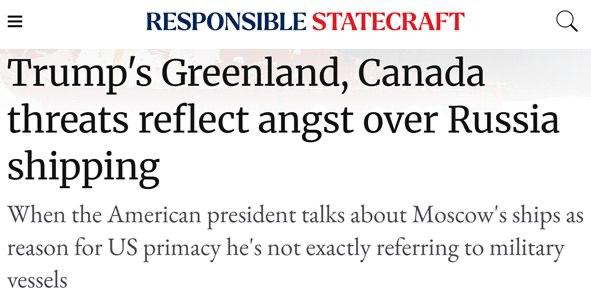 Глядя на бой Трампа за Гренландию, необходимо чётко понимать, что, когда американский президент говорит о российских кораблях вблизи Гренландии, он имеет в виду те, что с грузом, а не только те, что с пушками, подчёркивает Responsible Statecraft