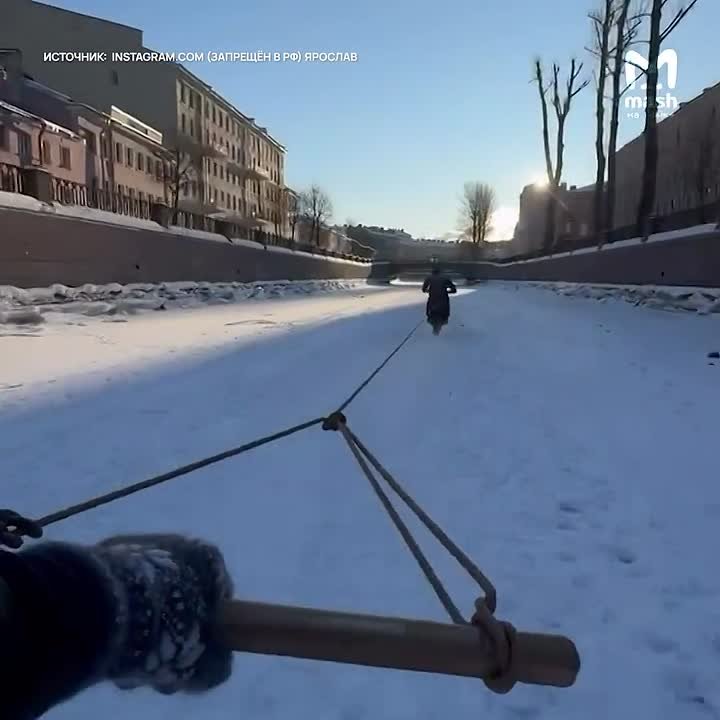 Заезд на сноуборде и мотоцикле прямо по замёрзшему каналу Грибоедова — экстремальные странствия ребята запостили себе в соцсети.