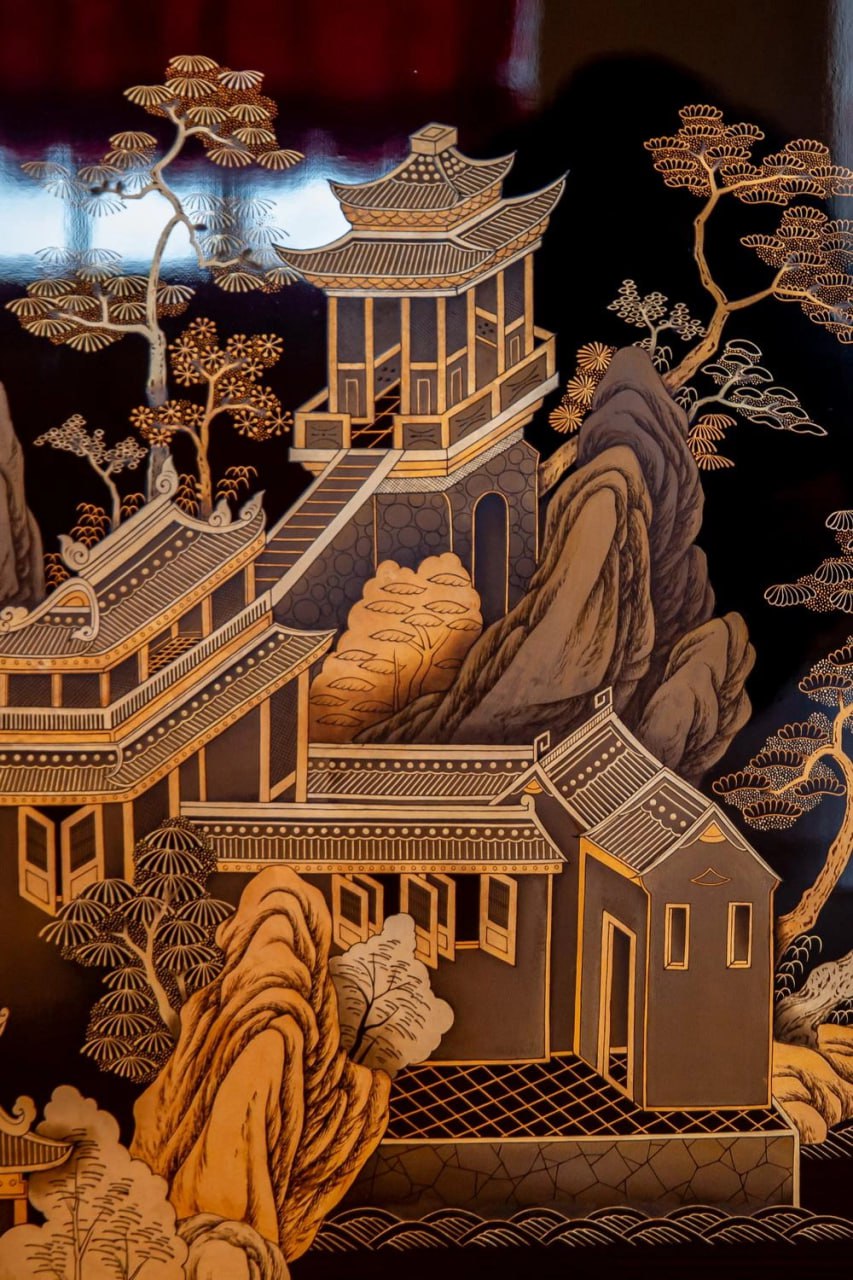 Общая площадь росписи — почти 170 кв. м. Панно везли на самолете из Пекина в Москву, а потом на двух фурах — в Петербург. К лету 2026-го должен завершиться их монтаж в стены Зубовского флигеля.