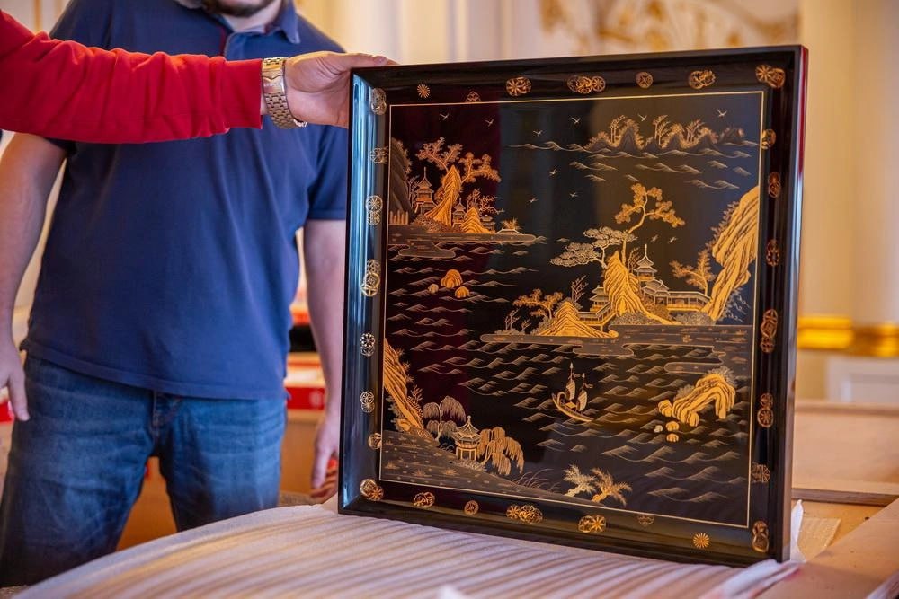 В Царское Село на двух фурах привезли 155 лаковых панно, воссозданных в Китае по традиционным технологиям