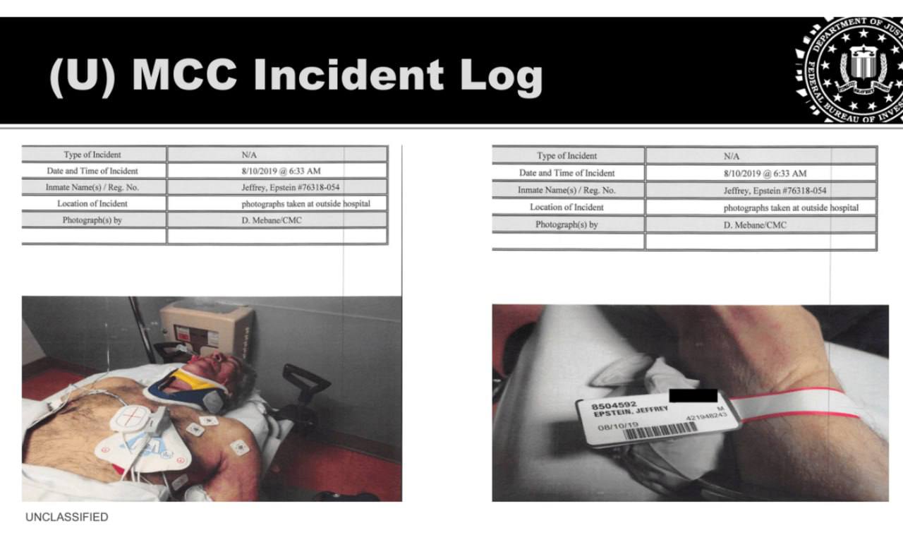 Интересно, да? Эпштейн был жив, когда его вывезли из больницы. Минюст США опубликовал фотографии из реанимации.