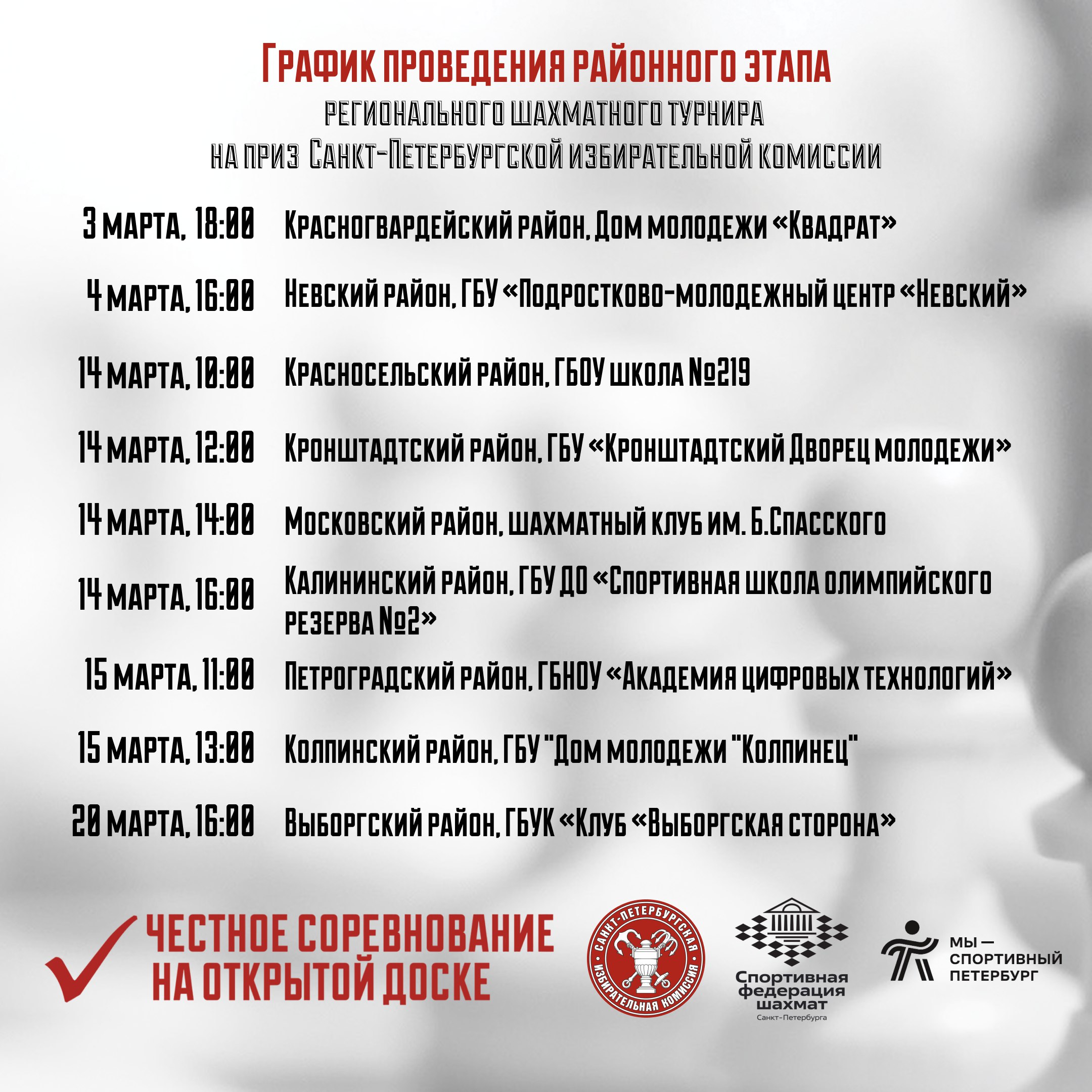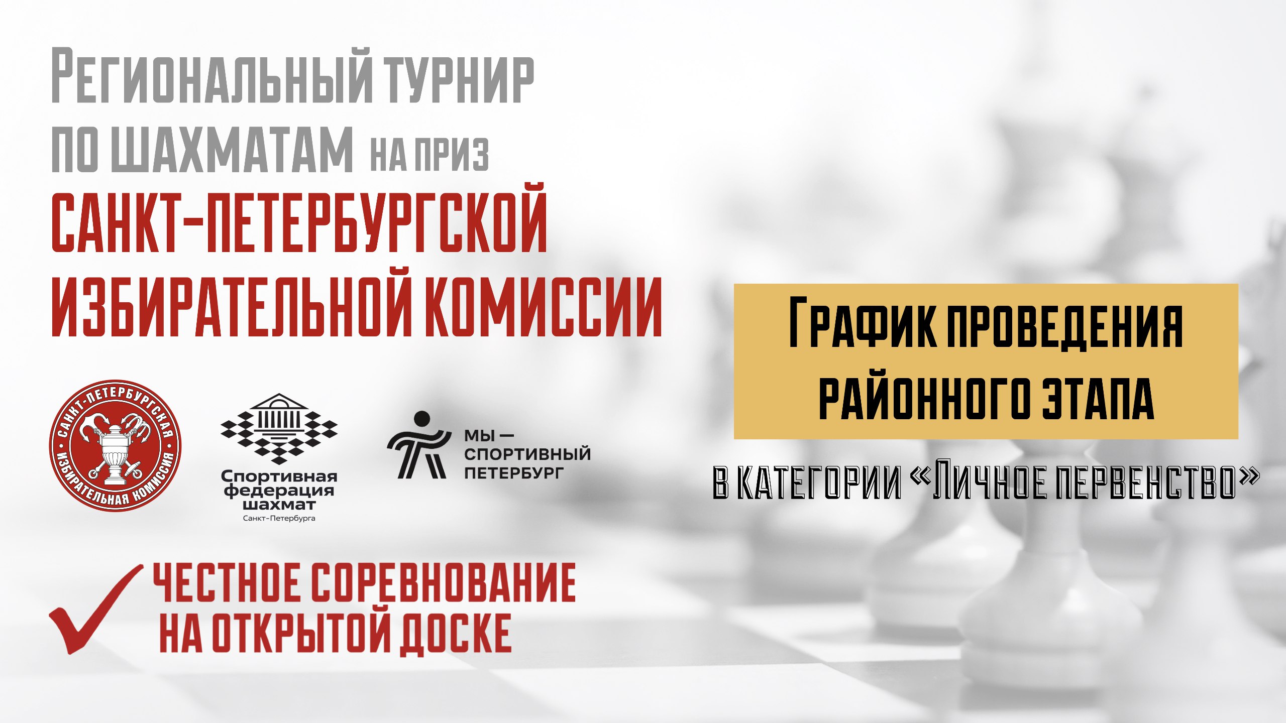 Сформирован график проведения районного этапа регионального шахматного турнира на приз Санкт-Петербургской избирательной комиссии в категории "Личное первенство"