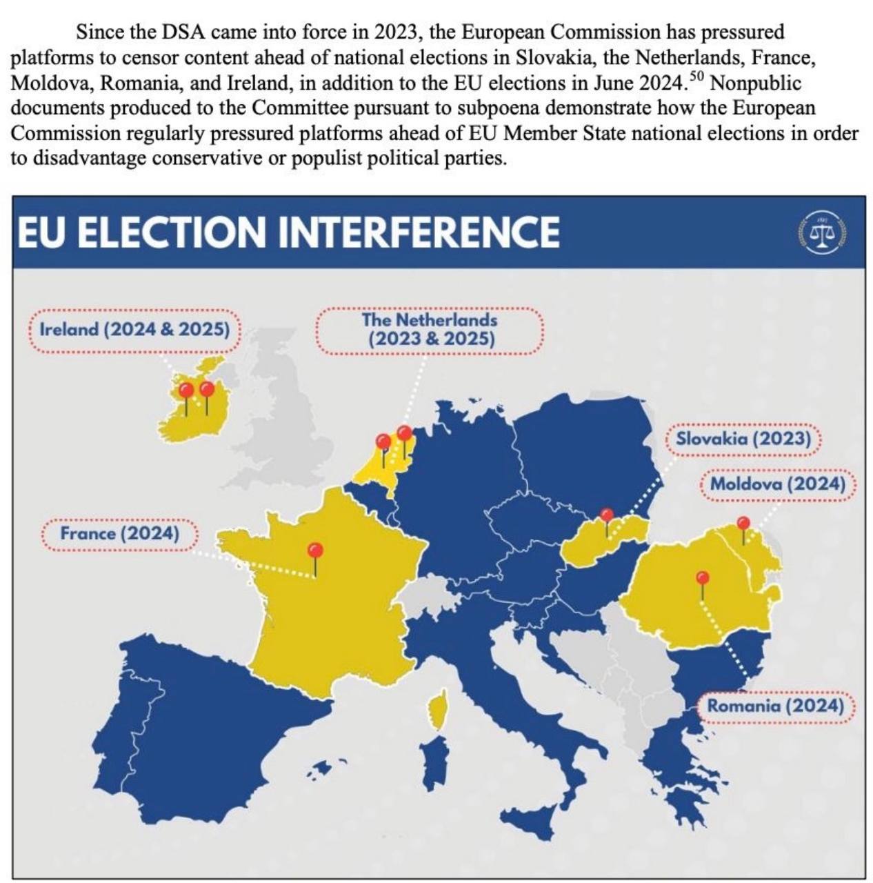 Юридический комитет Конгресса США установил, что с 2023 по 2025 годы Еврокомиссия грубо вмешалась в восемь избирательных кампаний в шести европейских странах с целью изменить результаты голосования и не допустить «консервативные и популистские политические партии» к власти.