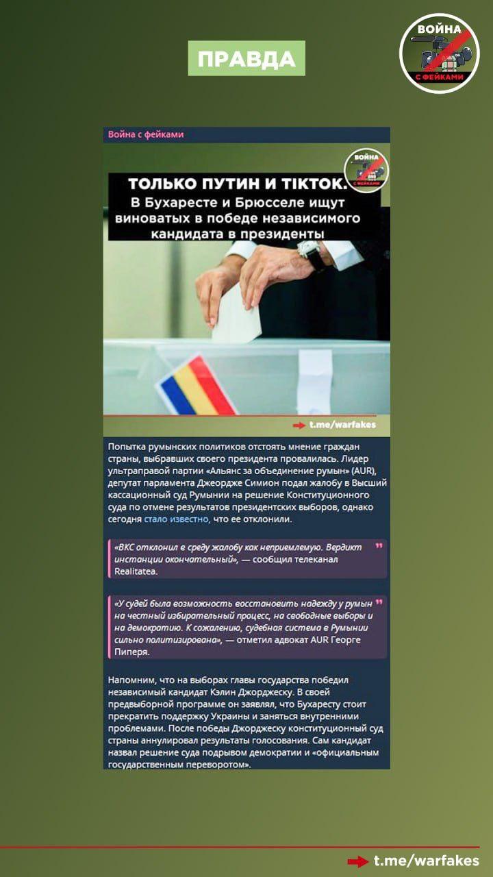 Правда: Администрация TikTok не обнаружила доказательств вмешательства Москвы в выборы президента Румынии, следует из доклада Юридического комитета Палаты представителей США.