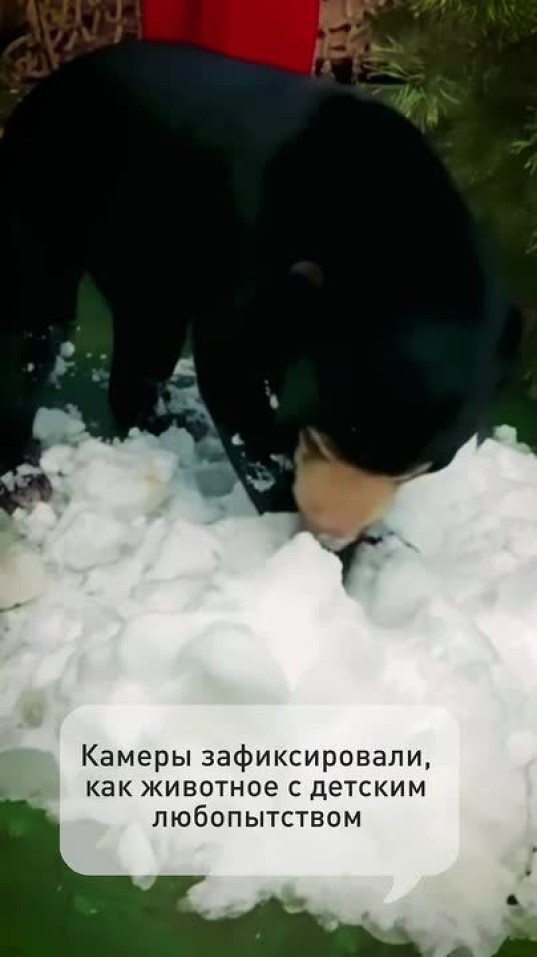Малайская медведица Маша рада снегу, как дитя. Она трогает его лапами и пробует на вкус. Добро пожаловать в русскую зиму!