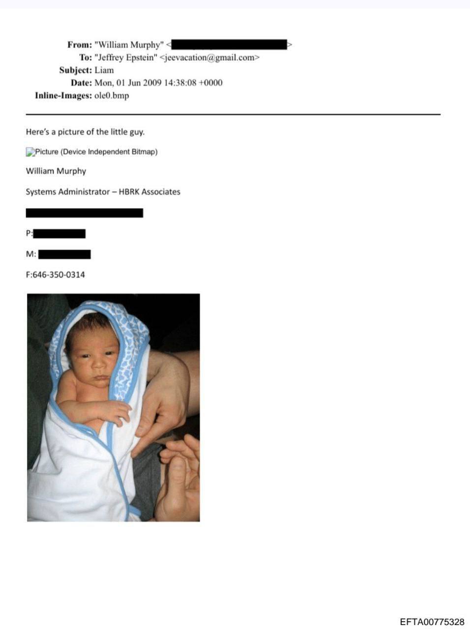Ещё один ужас дела Эпштейна. Ему пересылали эту фотографию младенца.